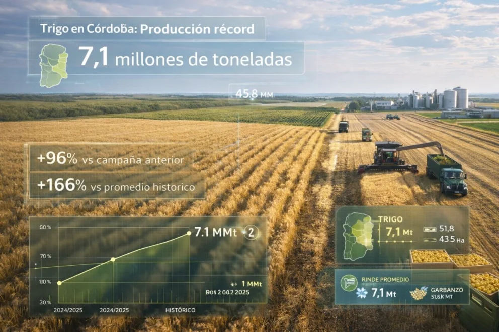 Trigo en Córdoba: mayor volumen histórico con 7 millones de toneladas